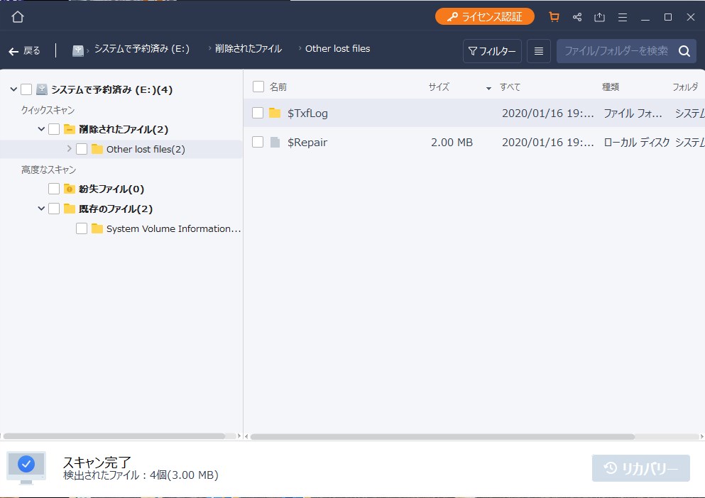 - スキャン結果から復活させたいデータを選ぶ